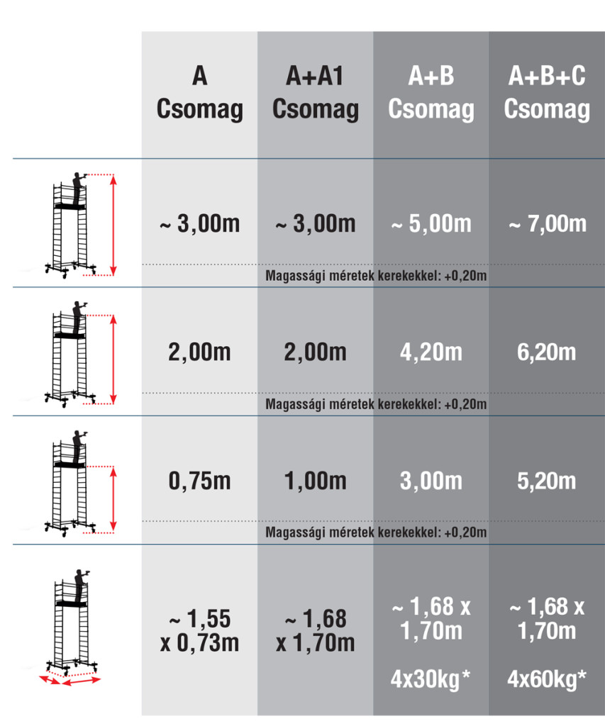 Gurulóállvány HELIO H 7m Komplett csomag (A+B+C csomag)
