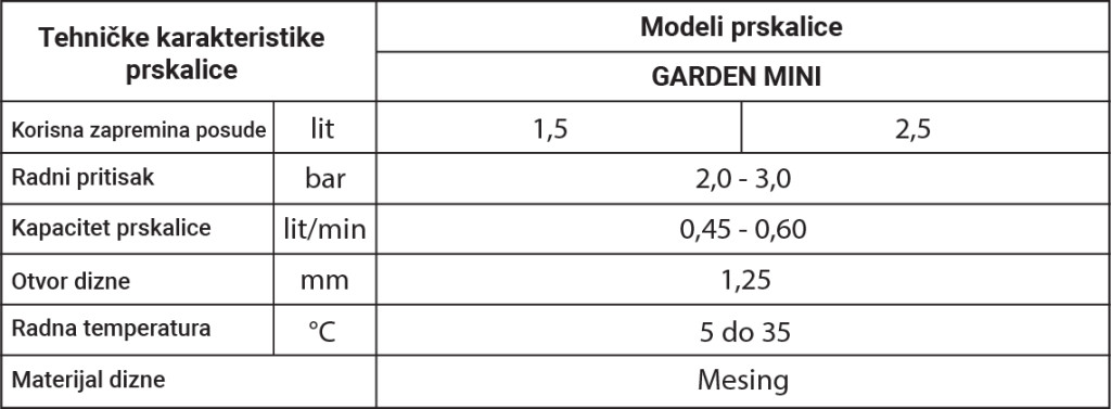 A GARDEN permetező kizárólag vízben oldott növényápolási szerek (gyomirtók, rovarirtók, gombaölő szerek és növényi tápanyagok) kijuttatására szolgál.