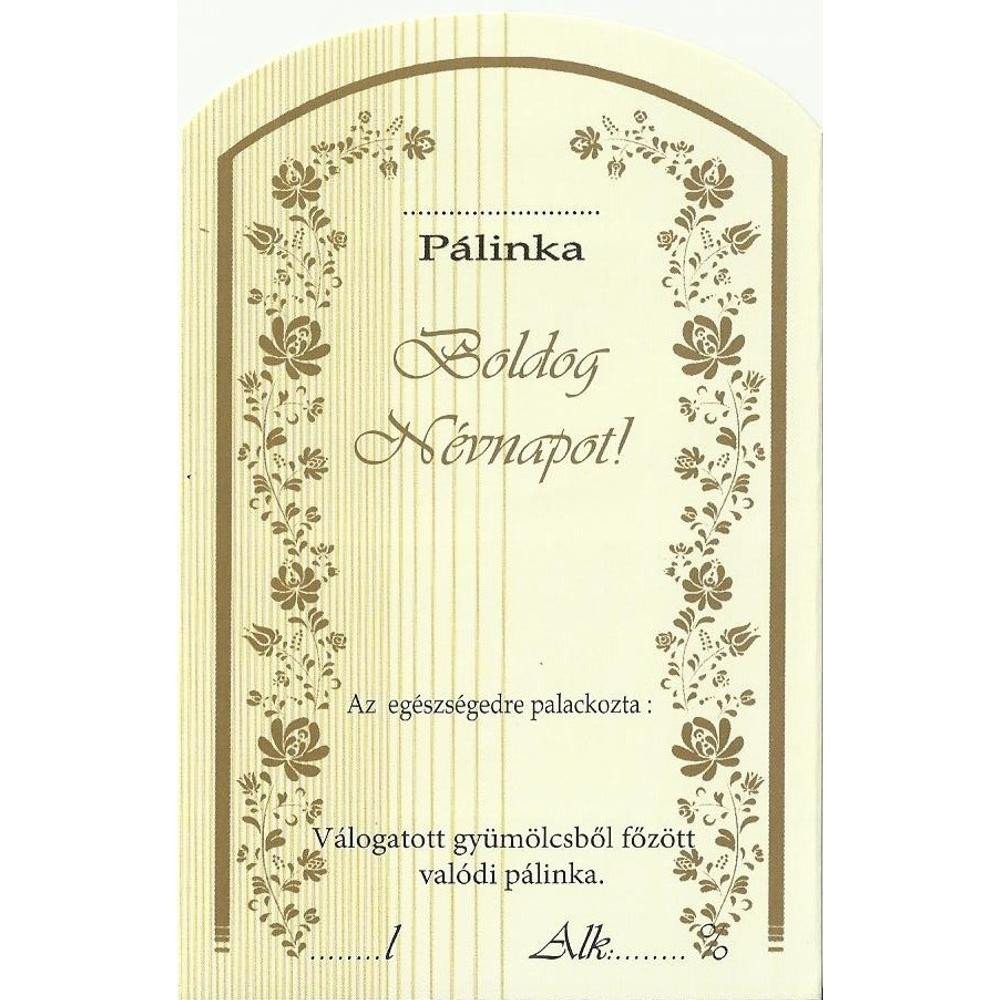 Öntapadós címke pálinkás üvegek címkézéséhez. 1 csomag 10 db matricát tartalmaz. Méret: 11,5 x 7,4 cm.